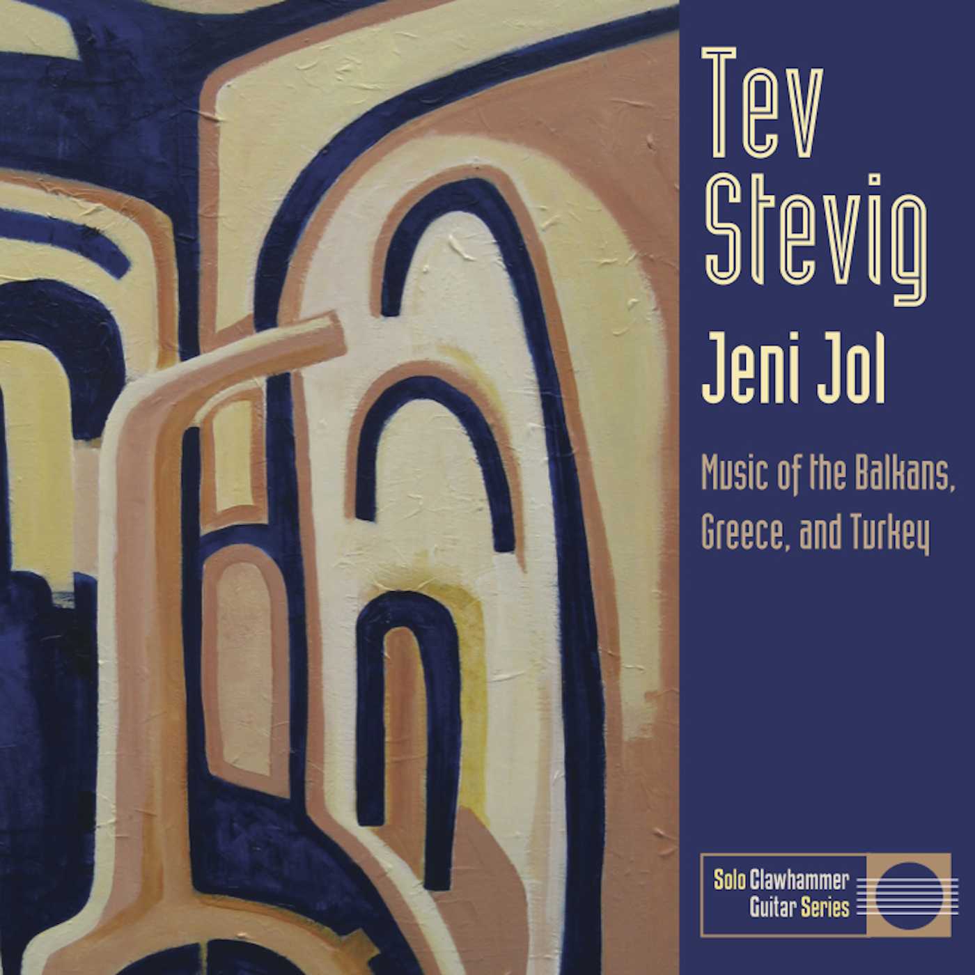For Boston-based musician Tev Stevig, an epiphany occurred when he first heard the fretless guitar. For years, Stevig had explored American music from old time folk music to jazz, as well as the sounds of the Balkans and the Middle East. He wanted to bring together all of his musical passions and with this instrument he saw a path to realize his intentions. Today, Stevig introduces his album entitled Jeni Jol (“the New Path”) to the world, the first in a new series of recordings featuring clawhammer guitar, and it demonstrates his unique approach in brilliant fashion. Jeni Jol is not only a showcase of Stevig’s formidable talent, it is also a disc that breaks new ground in making connections between such disparate musical cultures.